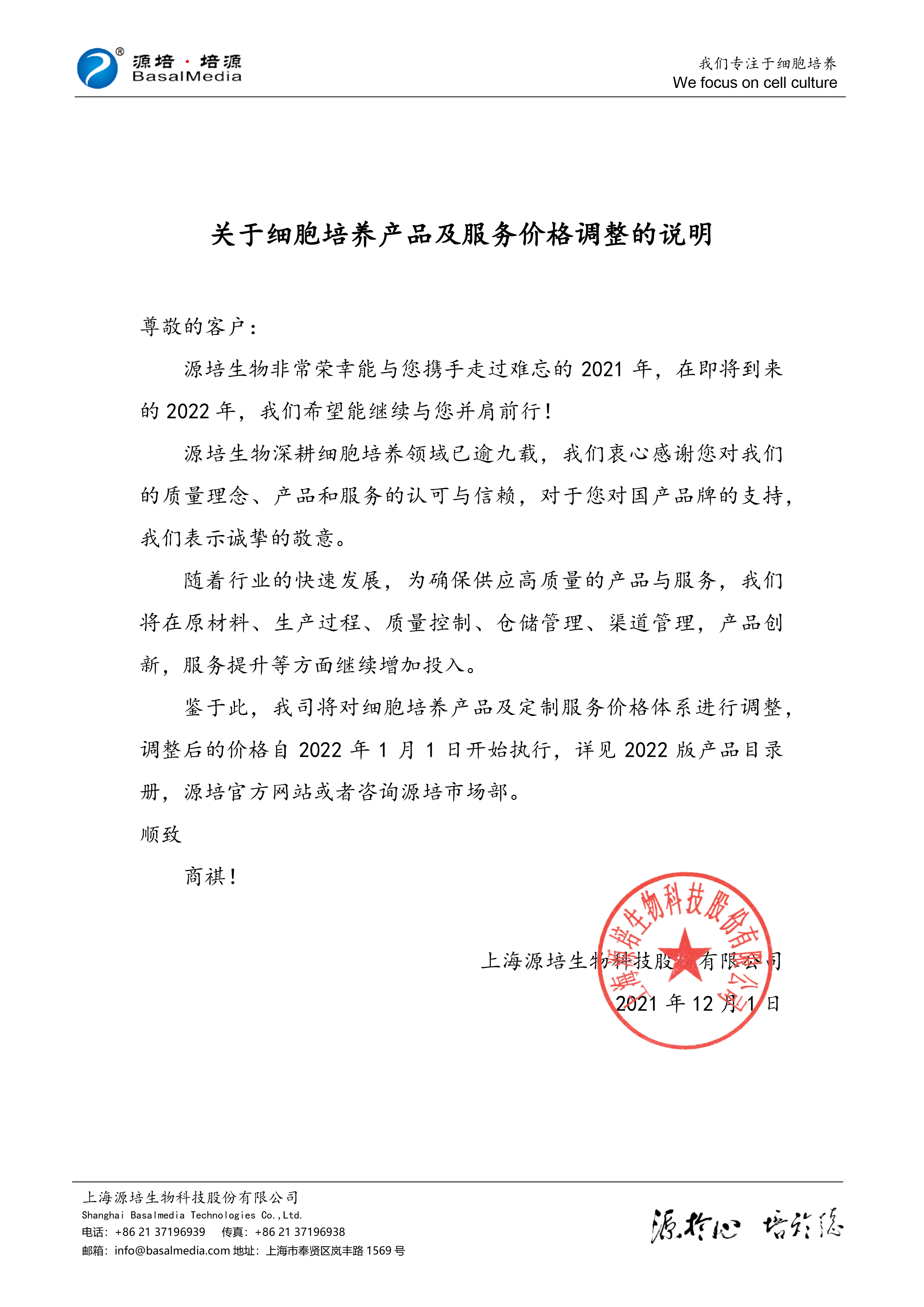 2021年12月8日 細(xì)胞培養(yǎng)產(chǎn)品線調(diào)價(jià)通知