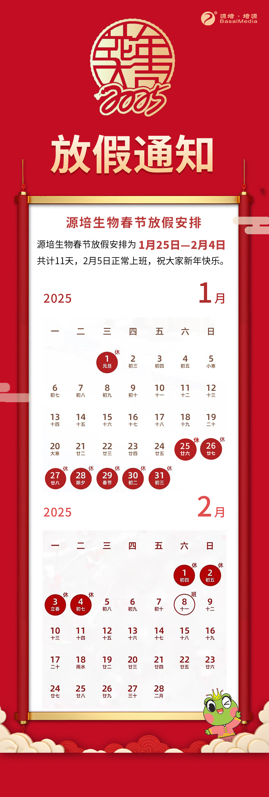 通知 | 源培春節(jié)放假通知