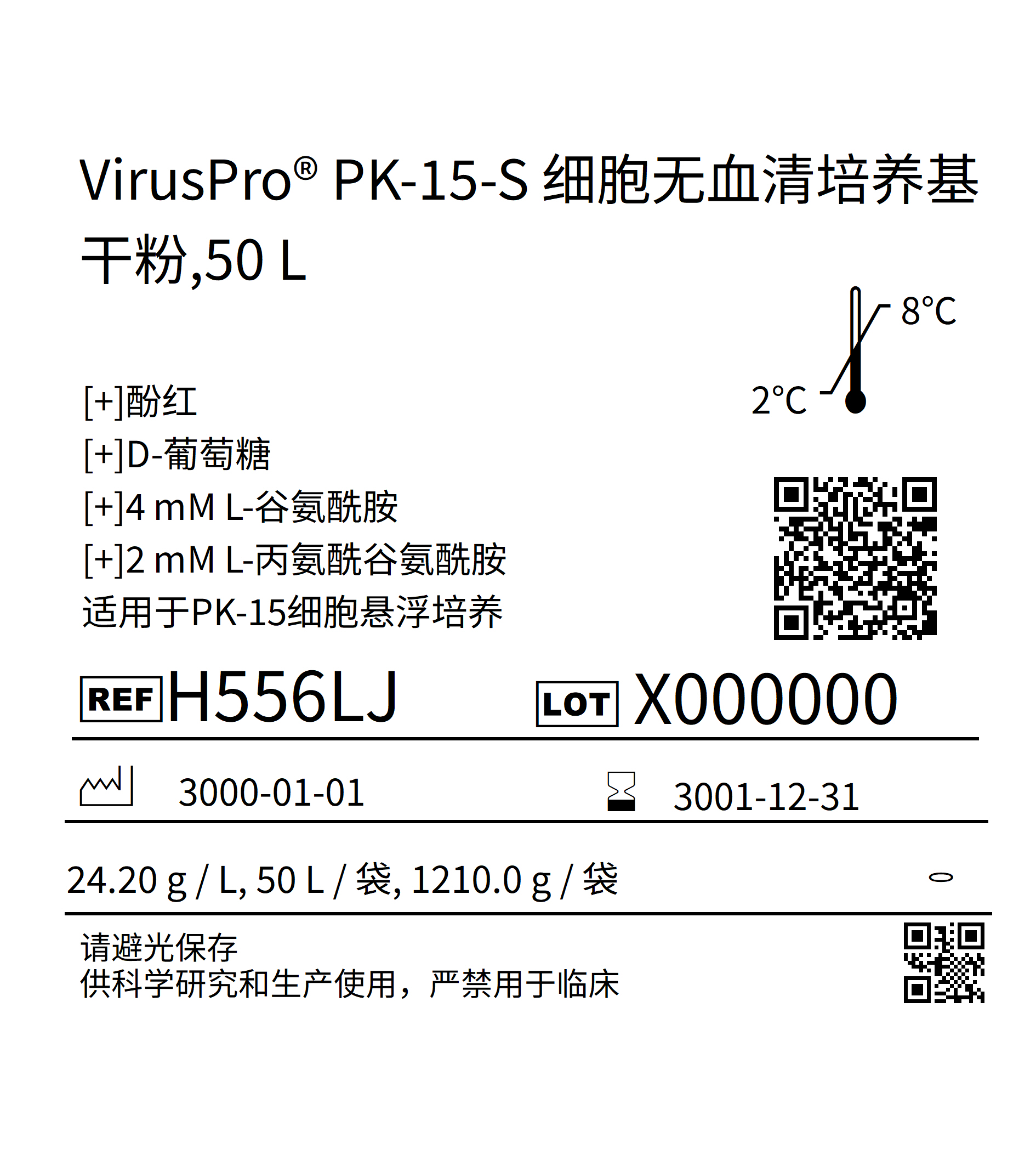 VirusProTM PK-15-S是一種含BSA(隨包裝單獨(dú)提供,即添加劑A)的無血清培養(yǎng)基,適用于豬腎細(xì)胞的懸浮培養(yǎng),用于病毒擴(kuò)增和疫苗生產(chǎn)。