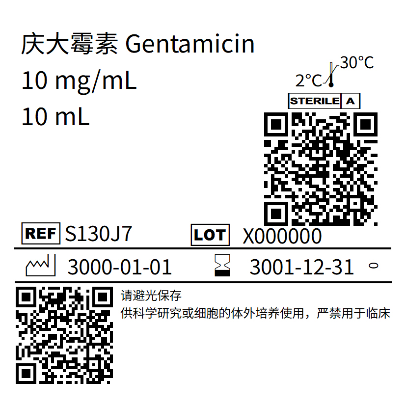 慶大霉素(Gentamicin),即硫酸慶大霉素濃度10mg/mL。此抗生素在常溫下穩(wěn)定。