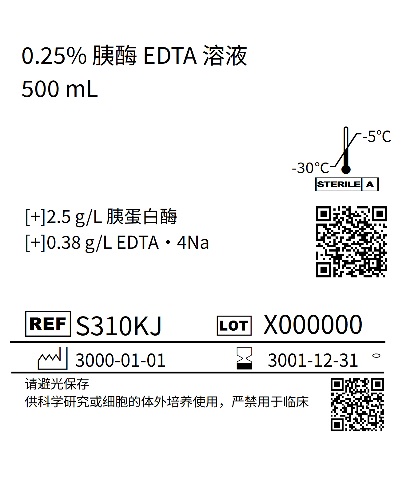 胰酶EDTA溶液,0.25%是使用胰蛋白酶干粉與EDTA混合溶解而成。胰蛋白酶是來(lái)源于豬胰臟的蛋白酶混合物,經(jīng)輻射滅菌。 由于其很強(qiáng)的消化能力,胰蛋白酶被廣泛地應(yīng)用于細(xì)胞解離、常規(guī)的細(xì)胞傳代和原代組織的解離。根據(jù)細(xì)胞類型和實(shí)驗(yàn)要求的不同,用于解離的胰蛋白酶濃度也各不相同,使用者應(yīng)根據(jù)相關(guān)文獻(xiàn)和工作經(jīng)驗(yàn)優(yōu)化蕞佳使用條件。