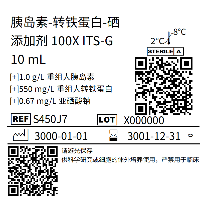 | 重要組分(+) | [+]1.0 g/L 重組人胰島素[+]550 mg/L 重組人轉(zhuǎn)鐵蛋白[+]0.67 mg/L 亞硒酸鈉 |