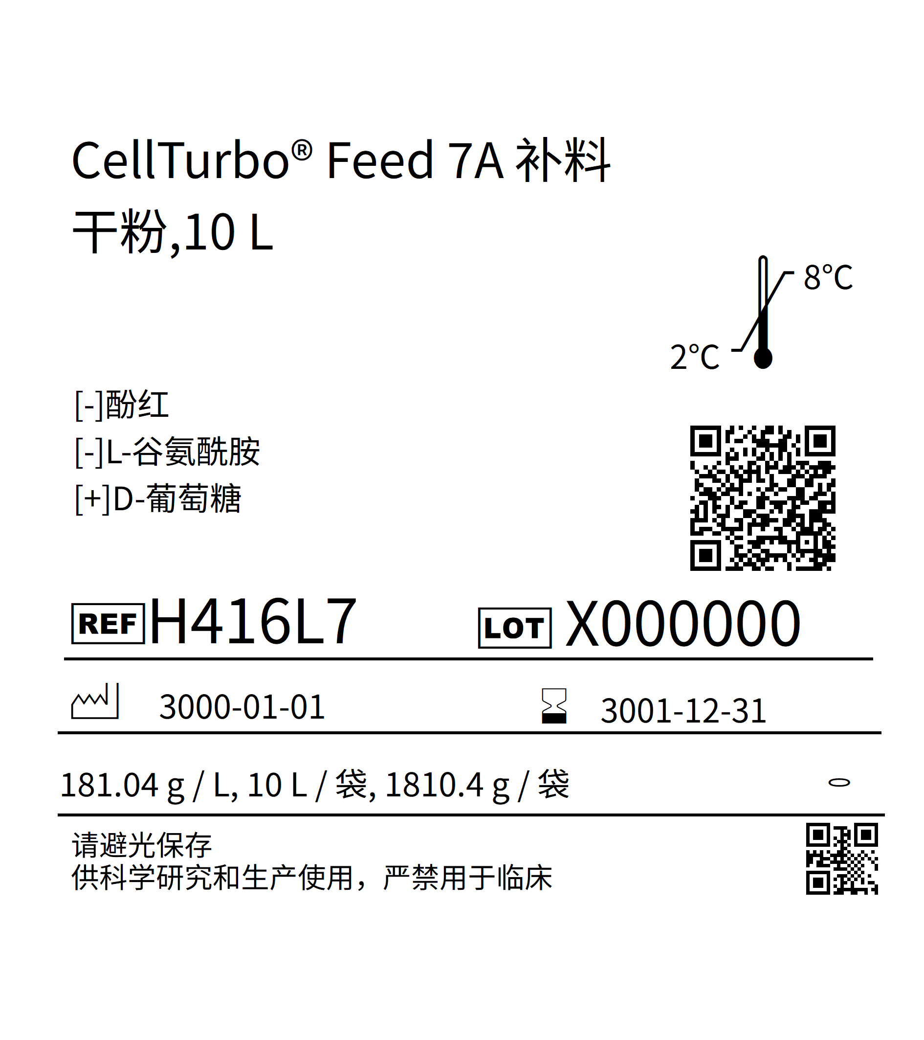 本品是CellTurbo? Feed 7 補料套裝的組分A。CellTurbo? Feed 7 補料套裝是無動物來源化學(xué)成份限定的補料,適用于CHO細胞生長的的穩(wěn)定表達。本產(chǎn)品含有高濃度的主要營養(yǎng)成份,是通過對細胞培養(yǎng)表現(xiàn)、物理特性、合規(guī)性和安全性進行多重分析而設(shè)計的補料,與CHO培養(yǎng)基配套使用,進行流加補料批式培養(yǎng),對常見的CHO細胞系,如CHO-S, CHO-K1, DG44, GS等均適用。