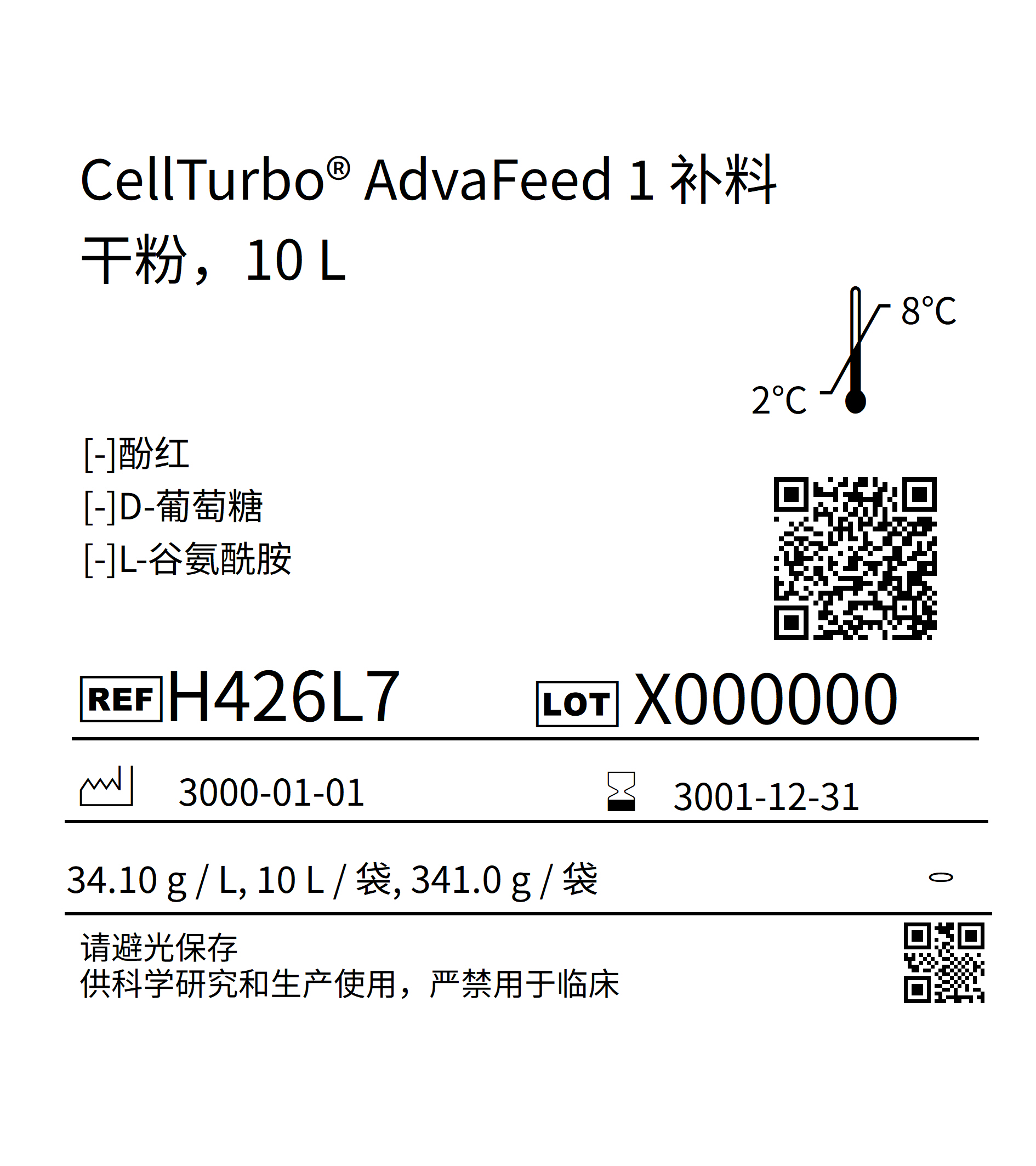 本產(chǎn)品是無動(dòng)物來源化學(xué)成份限定的補(bǔ)料,適用于CHO細(xì)胞生長的的穩(wěn)定表達(dá)。本產(chǎn)品含有高濃度的主要營養(yǎng)成份,是通過對(duì)細(xì)胞培養(yǎng)表現(xiàn)、物理特性、合規(guī)性和安全性進(jìn)行多重分析而設(shè)計(jì)的補(bǔ)料,與AdvaCHO無血清培養(yǎng)基(H320KJ)配套使用,進(jìn)行流加補(bǔ)料批式培養(yǎng),對(duì)常見的CHO細(xì)胞系,如CHO-S, CHO-K1, DG44, GS等均適用。該配方不含葡萄糖,使用前需額外添加,源培另外提供含葡萄糖的配方(H425L7)