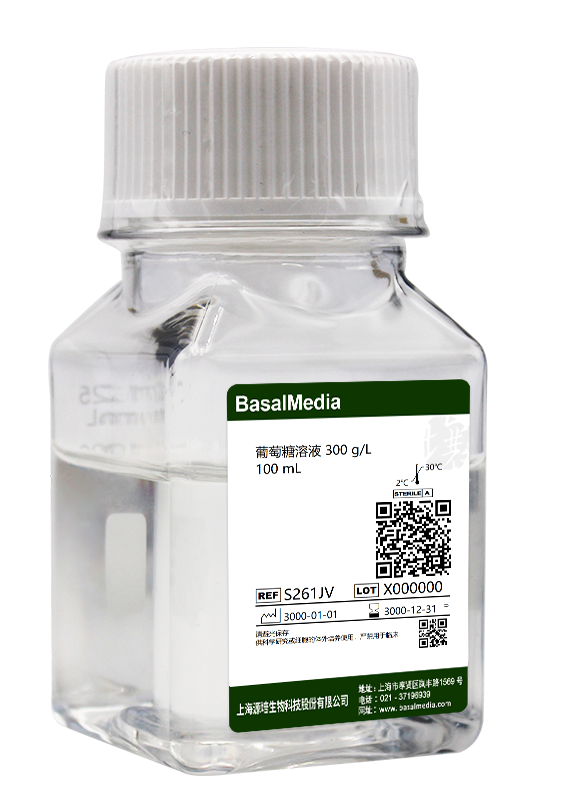 葡萄糖溶液含 300 g/L 濃度的D-葡萄糖,用作細(xì)胞培養(yǎng)的葡萄糖補(bǔ)充劑。